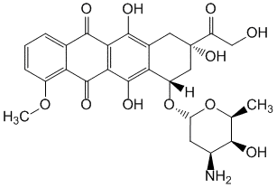 (8S-цис)-10-[(3-Амино-2,3,6-тридезокси-альфа-L-ликсогексо-пиранозил)окси]-7,8,9,10-тетрагидро-6,8,11-тригидрокси-8-(гидроксиацетил)-1-метокси-5,12-нафтацендион (в виде гидрохлорида).