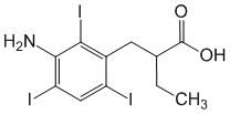 Альфа-Этил-3-гидрокси-2,4,6-трийодбензолпропановая кислота.