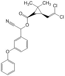 [Циано-(3-феноксифенил)метил](1R,3R)-3-(2,2-дихлорэтенил)-2,2-диметилциклопропан-1-карбоксилат.