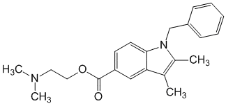 Бета-Диметиламиноэтилового эфира 1-бензил-2,3-диметилиндолкарбоновой-5-кислоты гидрохлорид.