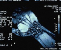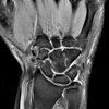 МРТ лучезапястного сустава. Высокоинформативный метод исследования лучезапястного сустава, основанный на измерении электромагнитного отклика ядер атомов водорода, подвергающихся воздействию радиоволн в магнитном поле. Результатом исследования является серия многослойных изображений. Методика позволяет визуализировать все структуры исследуемой области, распознавать дефекты кости, оценивать состояние хряща, мышц, связок и сосудов, расположенных в области сустава. Используется при воспалительных процессах, недавних поражениях, последствиях травматических поражений, доброкачественных и злокачественных новообразованиях, нарушениях развития, ограничении подвижности и болевом синдроме неясного генеза.