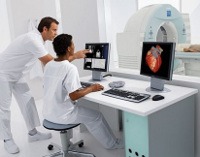 КТ коронарного кальция. Дополнительный диагностический алгоритм, обычно выполняемый как часть коронарной ангиографии КТ, позволяет проводить количественный расчет (индекс) кальция в артериях атеросклеротической бляшки. Это метод объективной диагностики коронарной кальцификации и прогностического маркера атеросклероза и ишемической болезни сердца. Было показано, что КТ коронарных артерий контролирует эффективность атеросклеротической терапии, обследует пациентов с синдромом неопределенной боли и историями факторов риска коронарных артерий (курение, диабет, гиперхолестеринемия, гипертония). Сканирование происходит за считанные секунды во время однократной задержки дыхания без контрастности. Расчет коронарного кальция проводится с помощью специальной компьютерной программы, в результате отражается как общий индекс, так и распределение индекса для каждой коронарной артерии в отдельности.