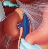 Диссекция надпочечника выполняется по границе капсулы и окружающей железу клетчатки. После выделения и клипирования центрального венозного ствола железы его пересекают, после чего надпочечник удаляется. Перед удалением портов внутрибрюшное давление снижается, производится ревизия и гемостаз ложа надпочечника, в забрюшинное пространство устанавливается улавливающий дренаж. Ушиваются дефекты в брюшине и кожные раны.