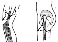 Суть метода заключается в том, что торцевая поверхность распиленного бедра покрыта передним клапаном, в котором находится спиленная передняя часть надколенника. Благодаря этой операции улучшается несущая способность концевой части культи, пациентам легче адаптироваться к протезу. Вмешательство проводится под общим наркозом или проводниковым наркозом. На передней поверхности коленного сустава производят дугообразный разрез и вырезают кожный лоскут. Предмет ткани прорезается через линию разреза кожи. Нижний край лоскута отслаивается, его собственный пучок надколенника пересекается над бугристостью большеберцовой кости.В подколенной области вырезан задний, более короткий, несколько выпуклый кожный трансплантат. Задний люк подтянут. Мягкие ткани рассекаются на уровне общего пространства. Продолжайте разделять лобную долю с сухожилием четырехглавой мышцы, надколенника и разрезом синовиальной оболочки. Коленная чашечка изношена. Мягкие ткани на спине и бедрах подтянуты. Бедро надето на костяшки пальцев. Артерии перевязаны. Нервы отрезаны. Коленная чашечка прикреплена к концу бедра с сильными швами катгут. Рана зашита и высушена.