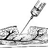 Инфильтрационная анестезия во время операции. Разновидность местной анестезии, в основе которой лежит инфильтрация слоя (замачивание) тканей раствором анестетика. Он широко используется в хирургии для небольших хирургических процедур и манипуляций: удаление опухолей мягких тканей, вскрытие абсцессов, удаление инородных тел Местные анестетики (лидокаин, новокаин, тримекаин и ) Используются для местной анестезии, блокируя выработку и проведение нервных импульсов. Алгоритм инфильтрационной анестезии заключается в следующем: раствор анестетика, собранный в шприце, сначала вводится внутрикожно, пока не появится комок («кожура лимона»), а затем игла толкается глубже, равномерно проникая в ткани в патологической зоне.