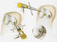 Артроскопическая хондропластика коленного сустава. Немедленное устранение дефектов хряща, вызванных травматическими повреждениями и заболеваниями коленного сустава, сопровождающимися разрушением хрящевой поверхности бедра, голени и надколенника. Техника позволяет восстановить правильную анатомию всех суставных поверхностей, включая наиболее сильно нагруженные участки мыщелка бедренной кости. Этот тип хирургии можно использовать для лечения посттравматического артрита, значительного разрушения хряща из-за болезни Кенига и ряда других заболеваний.
