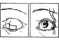 Блефаррофия (тарзарфия). Хирургические процедуры на веках с целью постоянной или временной полной или частичной окклюзии глазной щели. Показания к блефарафии могут включать лагофтальм, эритроз роговицы, нейропаралитический кератит и реверсию нижнего века. Кроме того, сшивание век может быть стадией других офтальмологических операций (орбитотомия, оптозиликальная неврэктомия). При частичной тарсоррафии отдельные швы накладывают на внешний угол глаза (боковой блефарафий) или на внутренний угол глазной щели (медиальный блефарафиф). При полной блефарафии веки соединены несколькими вертикальными швами.