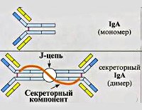 Иммуноглобулин A (IgA) в организме представлен сывороткой и секреторной формой: первая циркулирует в крови, вторая определяется на поверхности слизистых оболочек. Эти антитела продуцируются В-лимфоцитами и являются гликопротеинами по химической структуре. В основном иммуноглобулин А (IgA) не присутствует в крови, но на слизистых оболочках, в различных секретах, таких как грудное молоко, слюна, слезная жидкость, бронхиальная и желудочно-кишечная слизь, желчь. Благодаря секреторному компоненту антитела защищены от переваривания путем воздействия агрессивных соединений во внутренней среде. Их активность сохраняется на различных поверхностях слизистой оболочки.