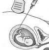 Другая методика трансабдоминальной биопсии хориона предусматривает применение специальных пункционных адаптеров, прикрепляемых к ручке датчика УЗ-аппарата. Адаптер обеспечивает электронную маркировку предстоящего хода пункционной иглы на экране монитора аппарата, что позволяет с высокой точностью перемещать ее в полости матки и контролировать глубину проникновения. Электронную метку датчика направляют в нужную зону и по маркированной линии вводят иглу в ткань хориона.