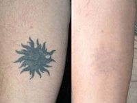 Лазерное удаление татуировок. Метод депигментации и удаления татуировок различной глубины, цвета, локализации с использованием свойств лазерного излучения. По сравнению с другими методами (хирургическое удаление, криохирургия, дермабразия, использование кислот), которые при удалении татуировок травмируют кожу и оставляют грубые шрамы, лазерное удаление татуировок является безопасным и высокоэффективным. Лазерное удаление татуировки основано на способности избирательно поглощать лазерные импульсы пигментированными участками эпидермиса и дермы, расщепляя гранулы красителя на микрочастицы. Краситель обесцвечивается, затем постепенно удаляется с кожи через кровь и лимфу. Лазерное удаление татуировки не влияет на окружающие здоровые ткани.
