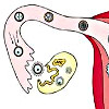 В яичниковом цикле происходит созревание яйцеклетки и овуляция, обеспечивающая оплодотворение. Яичниковый цикл состоит из фолликулярной, овуляторной и прогестеронной фаз (лютеинов), которые взаимно заменяют друг друга. При рождении в яичниках девочки содержится от 100 до 400 000 первичных фолликулов, число которых во время первой менструации уменьшается до 30-50 тысяч, из которых 400-500 созревает в течение всего периода фертильности, остальные претерпевают атрезию. В везикулярной фазе цикла фолликул растет и созревает, достигая размера 1,5-2 см в диаметре.В конце фолликулярной фазы зрелый фолликул разрушается, и зрелый ооцит (яйцо) покидает свою полость, происходит овуляция. Яйцо попадает в маточную трубу через брюшную полость, где оплодотворяется вокруг ампулы. Овуляция, вызванная действием эстрогена и гонадотропинов (ФСГ и ЛГ), совпадает с серединой менструального цикла и является наиболее благоприятной для зачатия. Оплодотворенные яйцеклетки разрушаются в течение 12-14 часов.