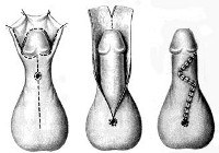 • Изменить размер пениса. Эта группа включает увеличение и утолщение полового члена. Утолщение может быть только эксплуатационным, удлинение - как операционным, так и консервативным (тяга, использование вакуумных приборов). Пластическая хирургия полового члена выполняется либо по медицинским показаниям (например, с помощью микропениса), либо по желанию клиента (в рамках косметической операции). Аутотрансплантаты используются для утолщения полового члена, при растяжении органа трансплантация ткани не требуется.