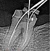 Оттаивание корневых каналов, запечатанных мягкими пастами, не составляет труда и осуществляется с помощью ручного инструмента. Различные растворители, обработка ультразвуком и борное бурение используются для удаления твердых зарядов. Канал постепенно и осторожно проходит от устья к вершине, используя файлы меньшего диаметра (иглы для прохода канала). Ультразвук и бор используются в тех случаях, когда невозможно пропустить канал вручную. Чаще всего трудности с ослаблением канала связаны с его анатомическим строением: изогнутый канал, узкий канал или щель.