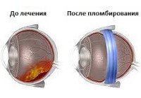 Экстрасклеральное наполнение. Это хирургический метод лечения заболеваний внутренней оболочки глазного яблока. Тактика хирургического вмешательства сводится к механическому сдавливанию сетчатки со специальным наполнением, закрепленным на внешней поверхности склеры. Существует три метода операции: радиальная, секторальная и круговая (круговая). Экстрасклеральное наполнение показано при отслойке и слезах сетчатки, а также при вытягивании стекловидного тела на внутренней мембране глаза. В послеоперационном периоде существует риск развития таких осложнений, как витреоретинальная пролиферация, макулярный фиброз, атрофия сосудистой оболочки и сетчатки, отторжение силиконового уплотнения. В результате экстрасклерального наполнения ожидается восстановление зрительных функций.