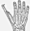 Скелетное вытяжение Клаппа. Способ иммобилизации мелких трубчатых переломов костей рук и ног (пястных и плюсневых костей, костей фаланг пальцев). Это выполняется с использованием шелковой нити, которая проводится через фалангу ногтя и соединяется с прочным проволочным бантиком с помощью пружины или эластика. Методика применена для осколочных переломов, невозможности надежного закрепления фрагментов с помощью гипса, смещения фрагментов. Введение пряжи проводят под местной анестезией. Тяговое усилие сохраняется до образования первичной костной мозоли. Впоследствии проволока удаляется, они обездвиживаются гипсом до полного склеивания трещины.