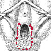 Vestibulektomiya. Хирургическое удаление вестибулярной области влагалища. Он используется в качестве последнего средства для неэффективности консервативного лечения местной индуцированной вестибулодинии (синдром вульварного вестибулита). Объем вестибулэктомии зависит от площади поражения и степени выраженности болевого симптома. Суть операции заключается в удалении части заднего сегмента преддверия влагалища, которая богата нервными окончаниями. После вырезания U-образного лоскута с внутренней стороны малых половых губ и нижнего полукруга на сосковом кольце слизистая оболочка задней стенки влагалища подтягивается и вшивается на кожу вульвы и промежности. Осложнения редки, возможны кровотечение, инфекция, расхождение краев раны. Когда железы Бартолини удалены в долгосрочной перспективе, дискомфорт наблюдается во время полового акта.