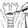 • местная анестезия. Перед коникотомией местная анестезия показана методом ползучего инфильтрата. Если пациент без сознания, процедура может быть выполнена без наркоза, чтобы сэкономить время.