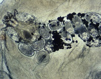 • Нанести жидкий парафин, клещи хорошо видны.