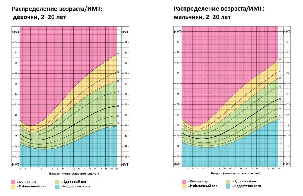 Нормальные значения индекса массы тела сильно зависят от пола и возраста